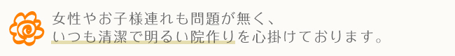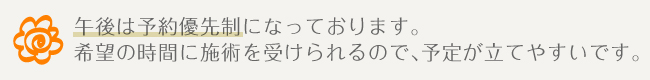 | 予約 | 予約優先となっております。 ※初診の方はあらかじめお電話の上お越しください。 |